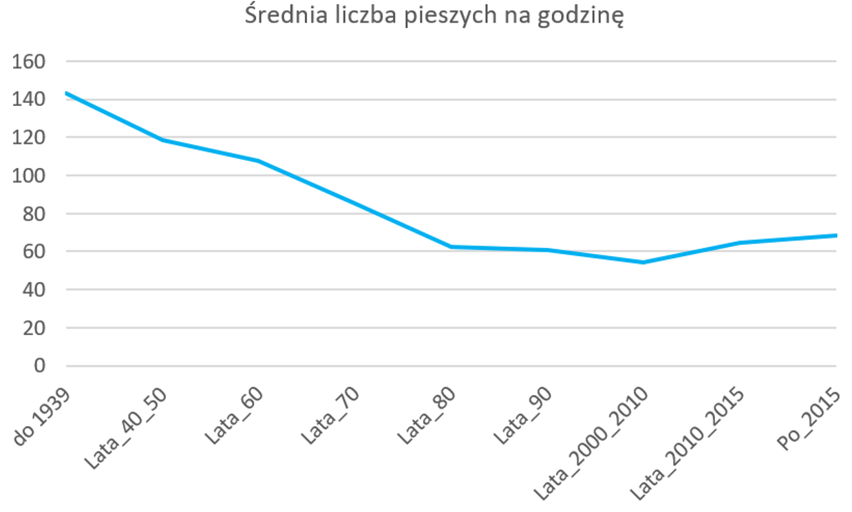 Warszawa może pochwalić się różnorodną zabudową, która czasem może sprawiać nawet wrażenie chaotycznej. To jak zaprojektowana jest przestrzeń, znacząco wpływa na liczbę pieszych, która z niej korzysta. Mimo wszystko trudno jednoznacznie powiązać, że to przestrzenie z konkretnego okresu są chętniej uczęszczane przez nich niż inne, ponieważ na to, czy skorzystamy z danego miejsca, wpływa wiele innych czynników. Z analizy wynika, że znaczenie ma funkcja danego budynek. Duże natężenie ruchu pieszych obserwowane jest w okolicach najstarszych obiektów, które wyróżniają się jako placówki oświatowe, gdzie ze względu na tę funkcję naturalnie będzie tam więcej przechodniów. Duża liczba pieszych w starszej zabudowie może wynikać również z faktu, że mieści się ona w większości w Śródmieściu lub dzielnicach bliskich centrum, które na ogół charakteryzują się największym natężeniem ruchu pieszego.