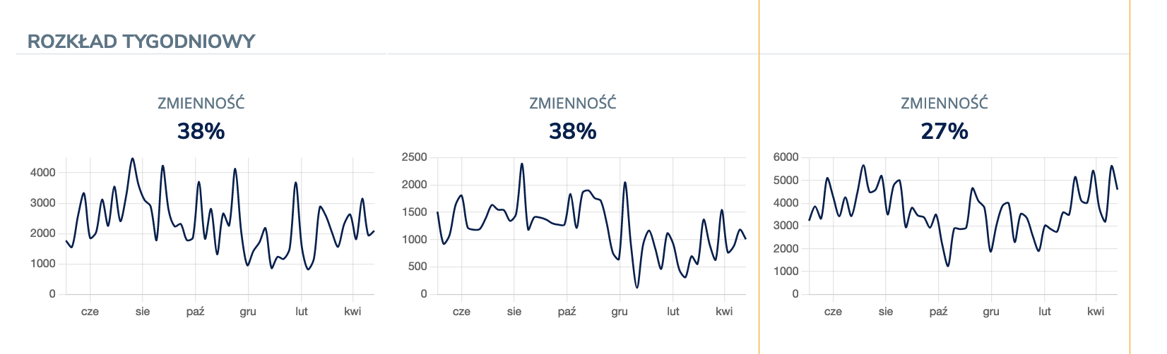 Warto jeszcze zwrócić uwagę na zmienność ruchu pieszych w ciągu całego roku. Porównanie wskazuje, że najbardziej stałym ruchem charakteryzuje się lokal przy Przasnyskiej. W kontekście obostrzeń i dużych zmian nawyków mieszkańców miast w trakcie pandemii jest to niezwykle ważne – biznes otwarty w nieodpowiednim miejscu mógłby stracić znaczną liczbę klientów na wiele miesięcy.
