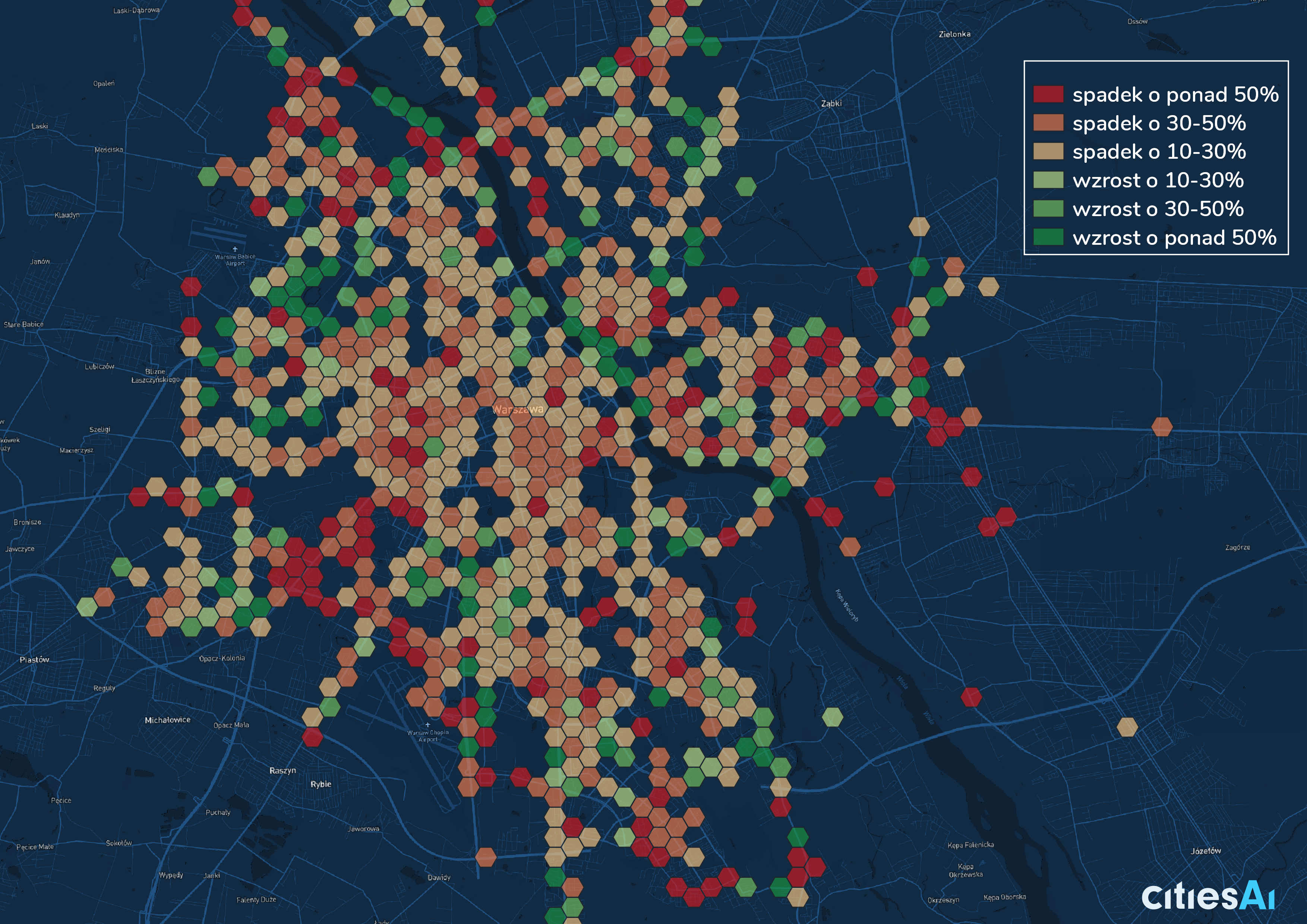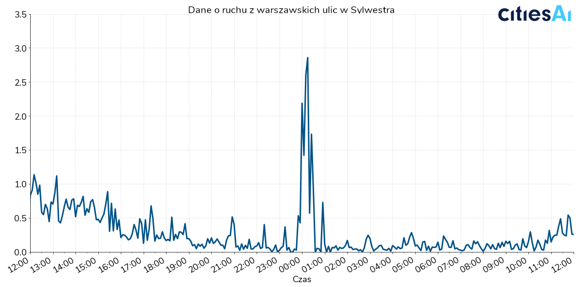 Między 17 grudnia 2020 a 1 stycznia 2021 mierzyliśmy intensywność ruchu w stolicy. Dzięki algorytmom i neurosieciom Cities AI sprawdziliśmy też, czy warszawiacy przestrzegali zakazu przemieszczania się w Sylwestra.